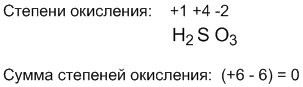 Эти правила полезны во многих случаях. Посмотрите, например, как c их помощью легко определяется степень окисления элемента с переменной (или неизвестной) валентностью по молекулярной формуле. Допустим, имеется соединение H2SO3. Спрашивается, какова степень окисления серы? Поскольку степень окисления водорода всегда (+1), а степень окисления кислорода (–2), то нетрудно подсчитать, что положительные и отрицательные степени окисления "уравновесят" друг друга в молекуле H2SO3 тогда, когда степень окисления серы составит (+4). В этом случае алгебраическая сумма всех степеней окисления в молекуле равна нулю: