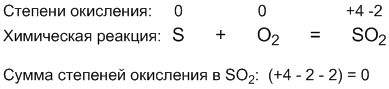 Степень окисления кислорода понизилась (-2), то есть кислород восстановился. Алгебраическая сумма всех степеней окисления в SO2 осталась равной нулю.